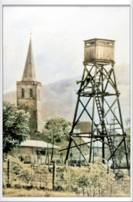 Ein Holz-Beobachtungsturm an der Grenze zwischen Philippsthal und Vacha in den 60er Jahren