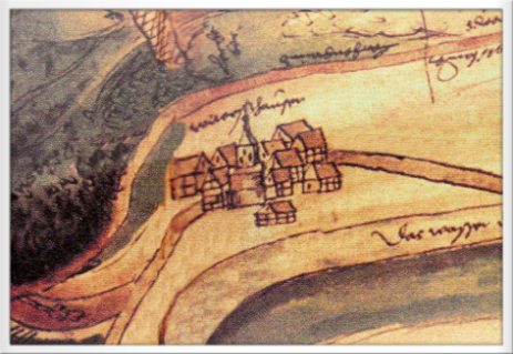 Das Dorf Widdershausen als Ausschnitt aus der Landkarte von 1556 - Staatsarchiv Marburg Bestand PII Nr. 10373